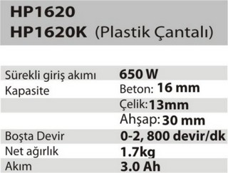 Makita HP1620- HP1620K Darbeli Matkap 650W